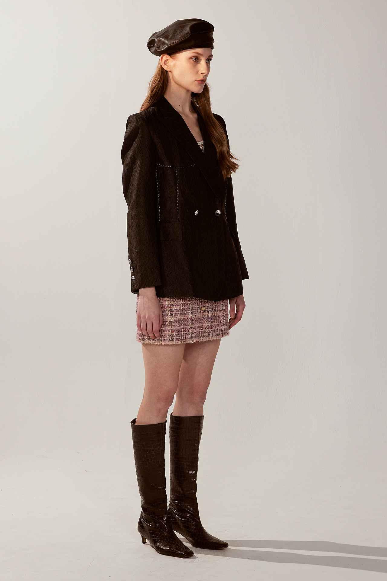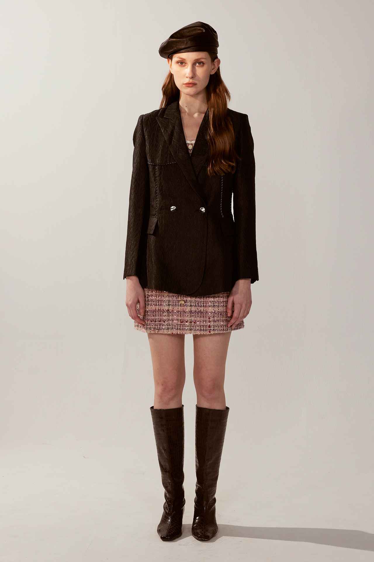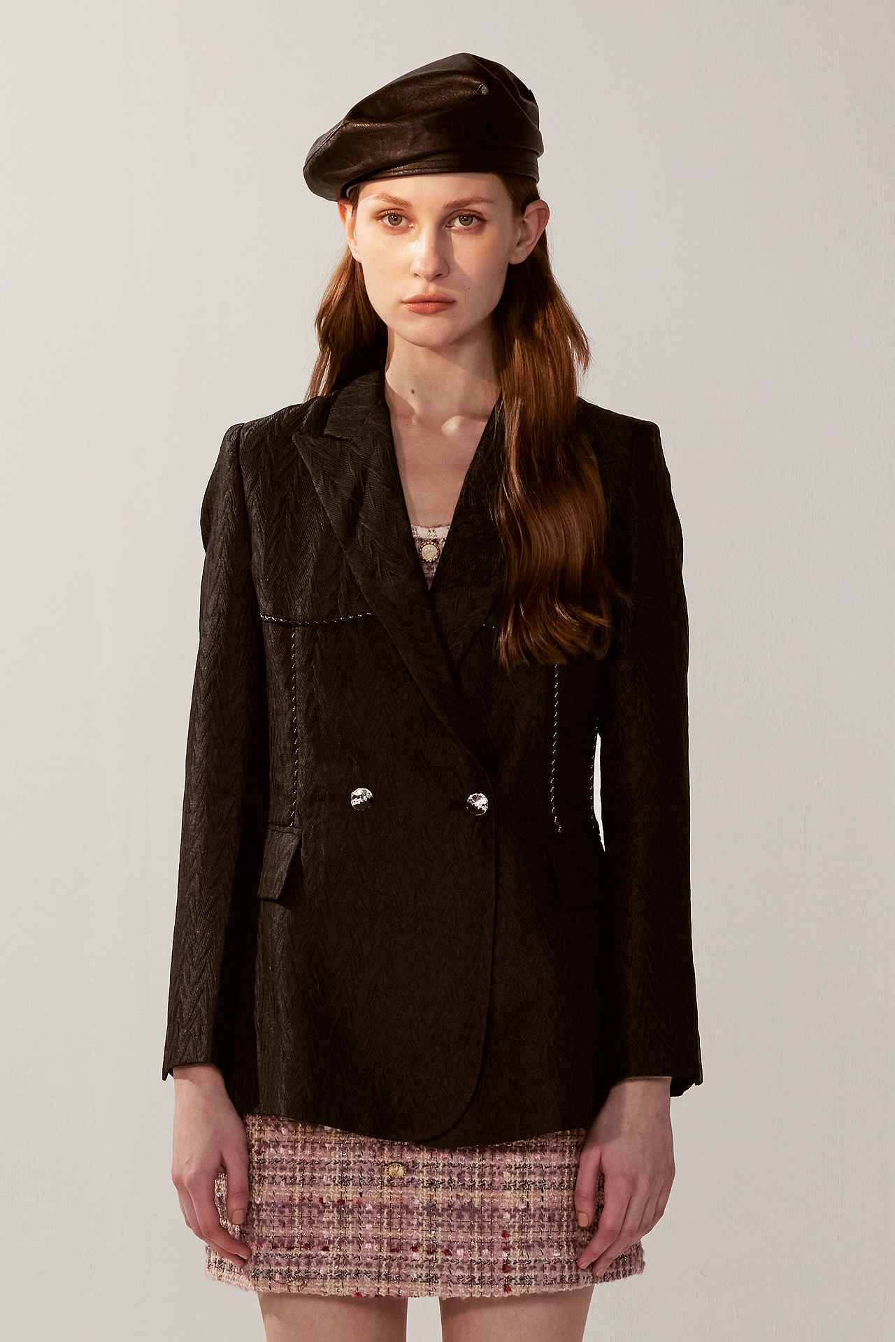 立體提花銀珠線條修身西裝外套 | JZNANA時尚購物集合