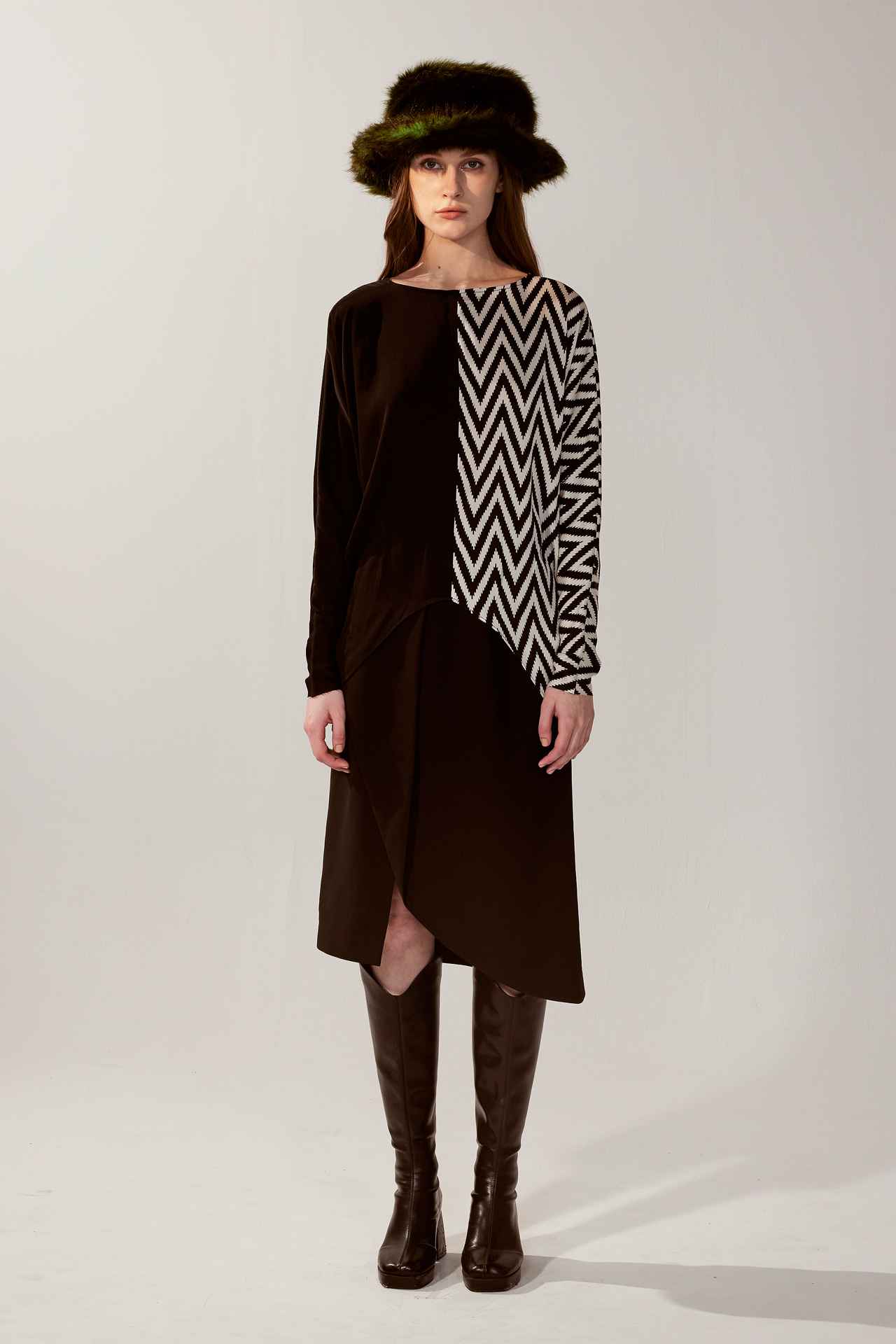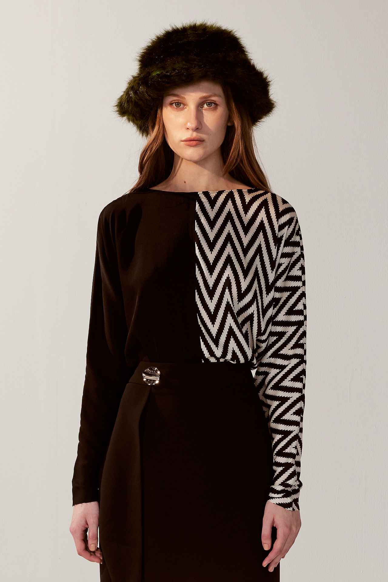 桑蠶絲黑白波紋蝙蝠袖上衣 | JZNANA時尚購物集合