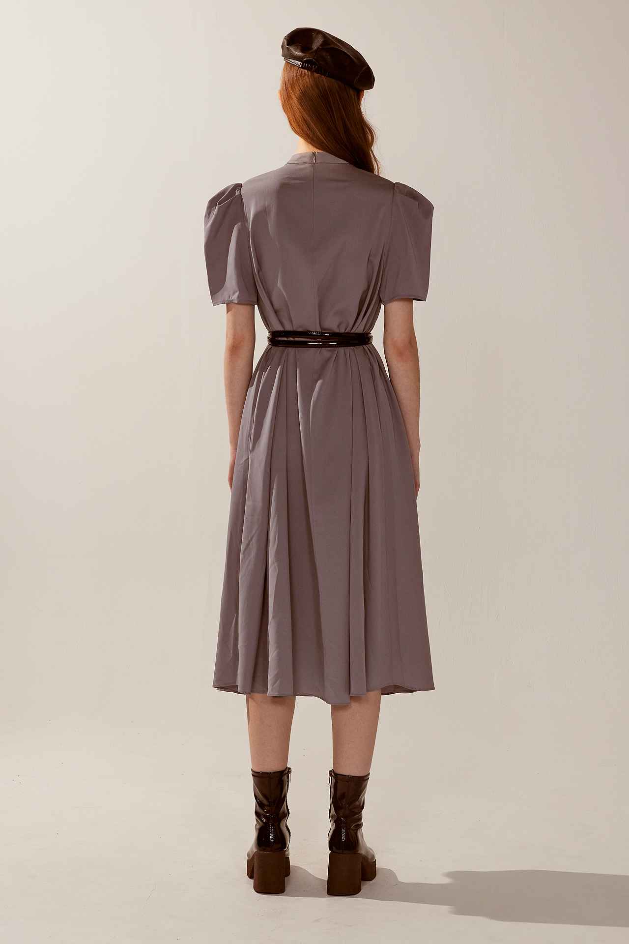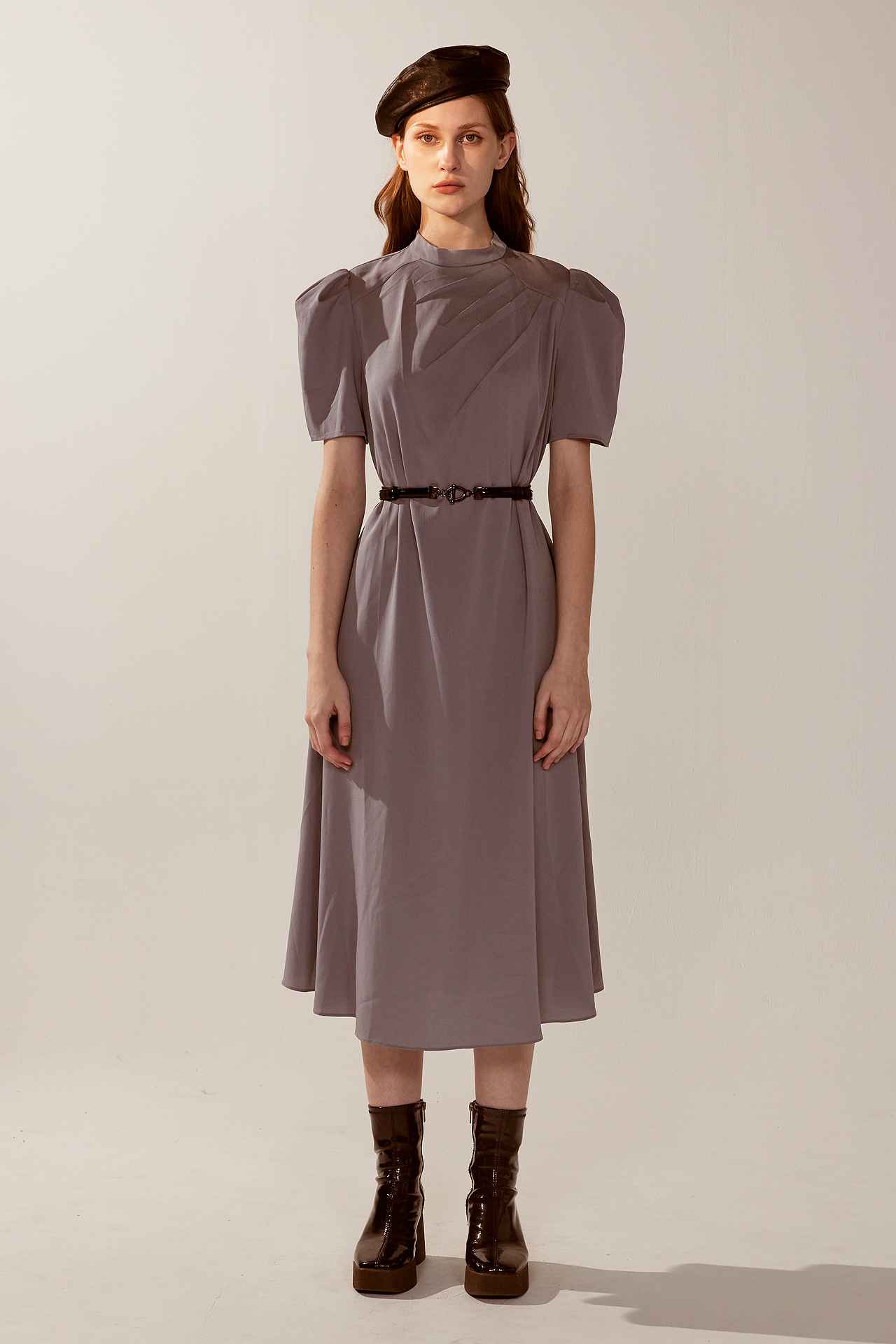 知性簡約紋理小澎袖寬鬆洋裝(附腰帶) | JZNANA時尚購物集合