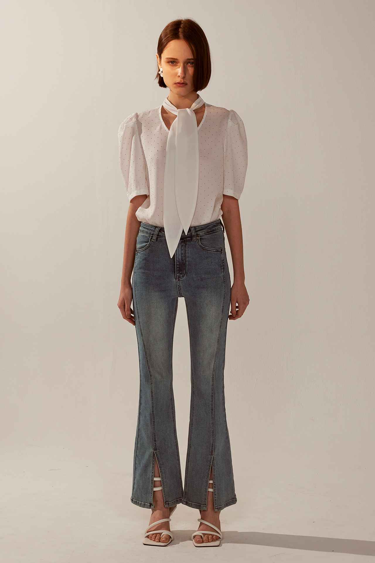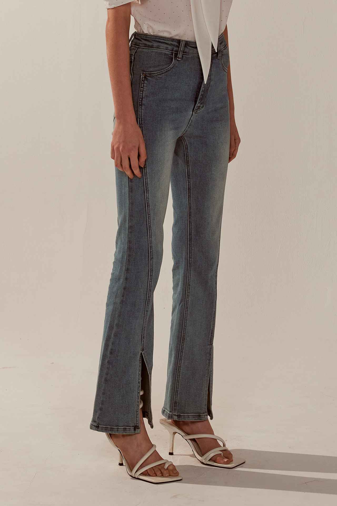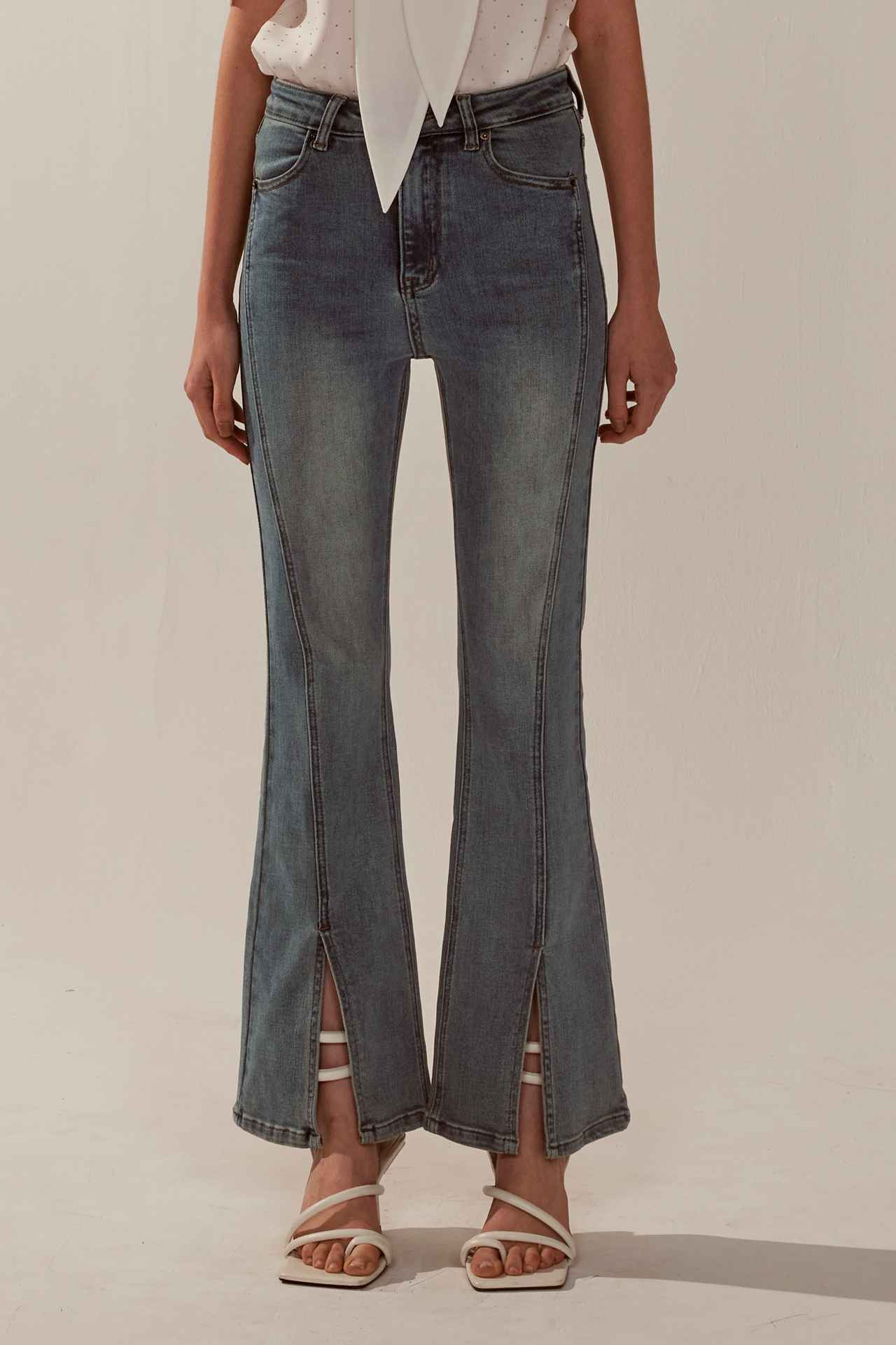 三葉草扣下擺開叉牛仔褲 | JZNANA時尚購物集合