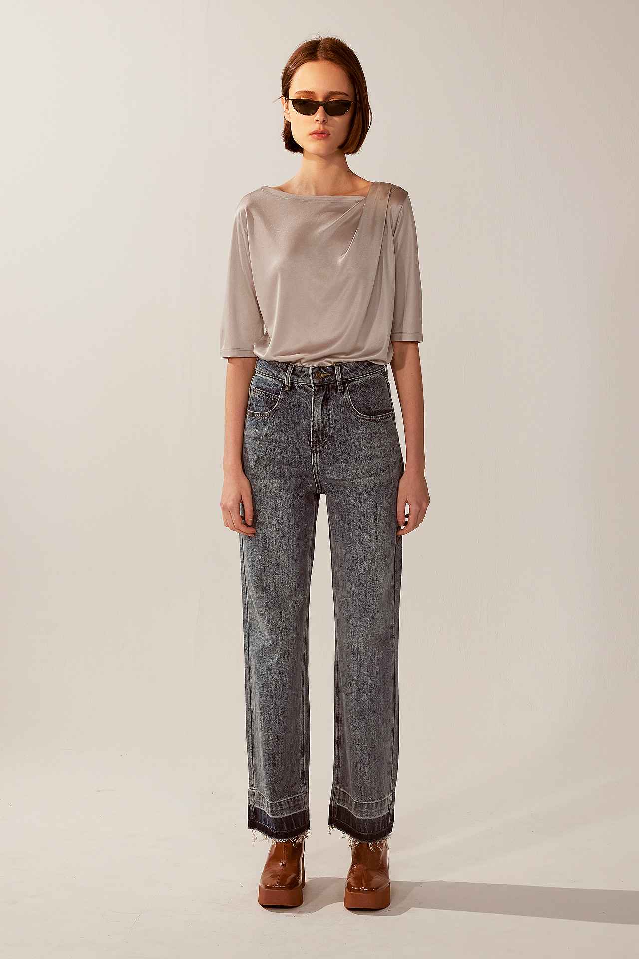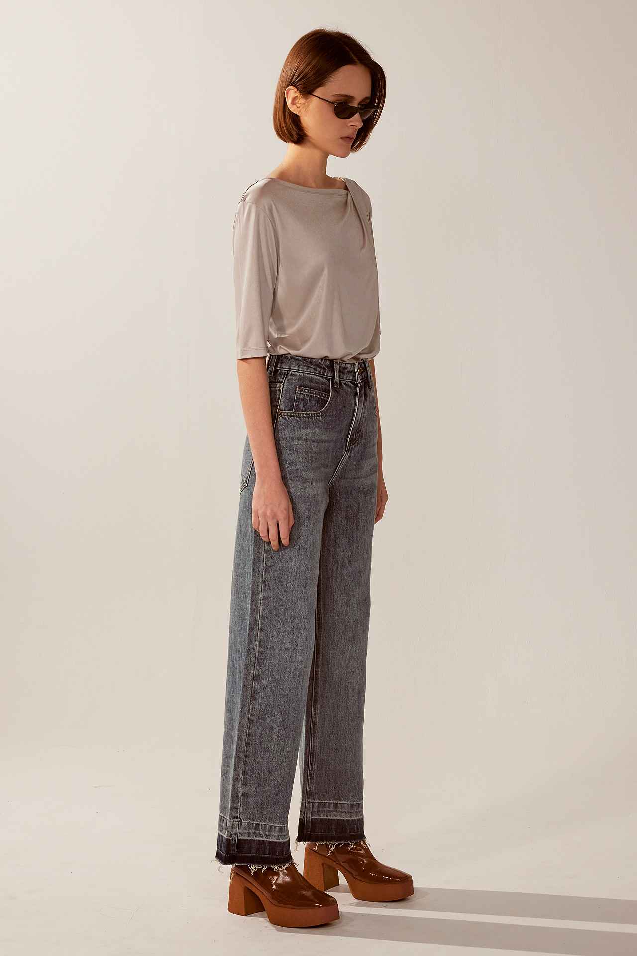 高腰反折牛仔寬褲 | JZNANA時尚購物集合