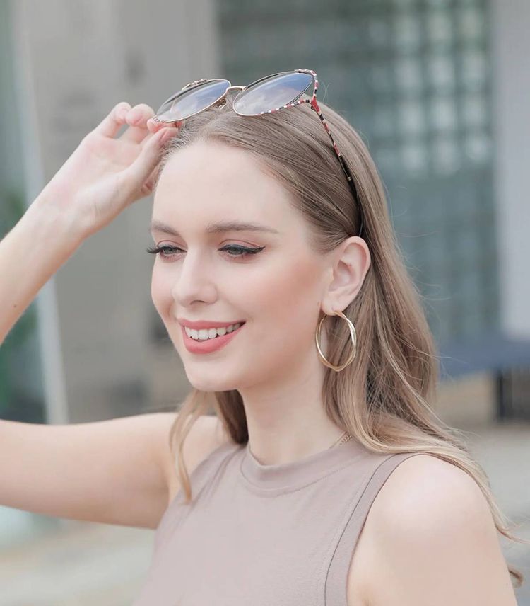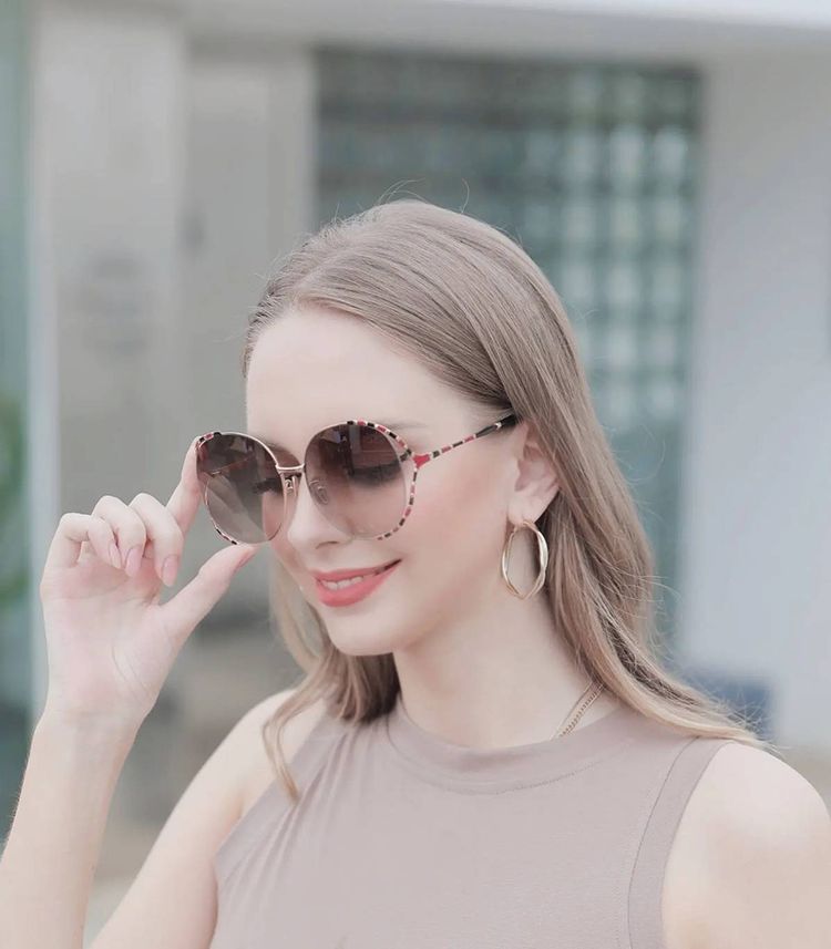 這款大面的圓框可以很好的修飾線條較銳利的臉部,讓臉部線條柔和。